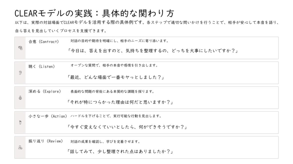 - 安心して本音を話せる環境を作るため